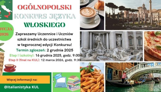 Obraz ze strony: https://www.kul.pl/ogolnopolski-konkurs-jezyka-wloskiego-edycja-2026,art_111778.html Mamy przyjemność poinformować, iż do...