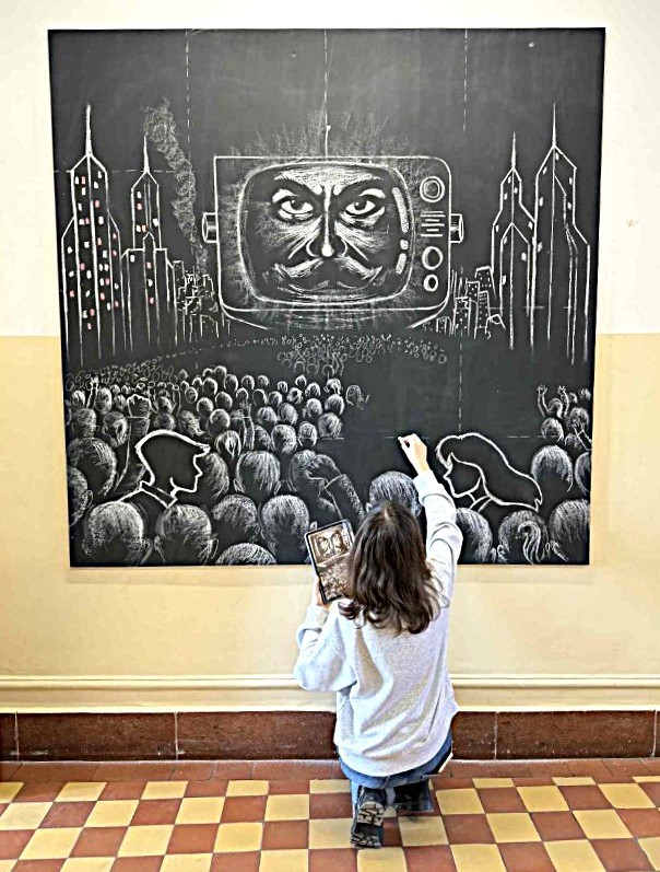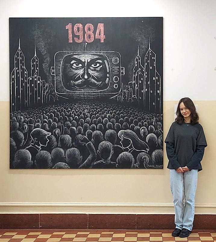 To tylko niektóre wrażenia naszych uczniów podziwiających powstały właśnie mural literacki inspirowany Rokiem 1984 George’a Orwella. Autorką dzieła jest IZABELA BRĄCZEK z kl. 4b, która już wcześniej pokazała swój talent stając się zwyciężczynią szkolnego konkursu KOPERBOOK.