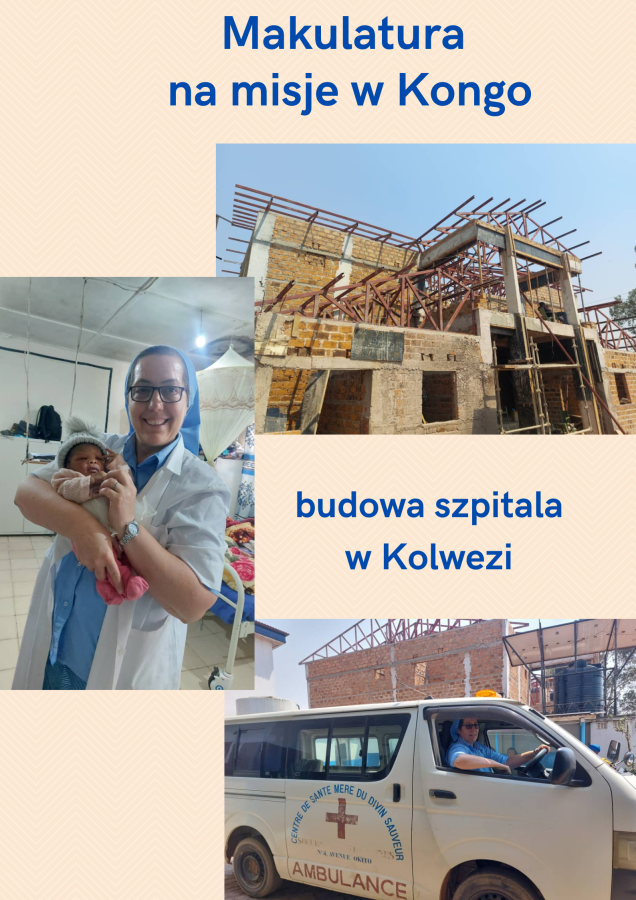 Makulaturę zważoną i związaną w paczki prosimy dostarczać do naszej Biblioteki Kopernika. Pozyskane ze zbiórki środki zostaną przekazane na potrzeby misji w Kongo, gdzie pracuje pozostająca z nami w kontakcie siostra Estera, która buduje szpital w Kolwezi.